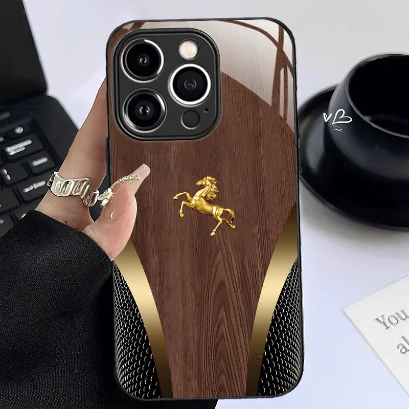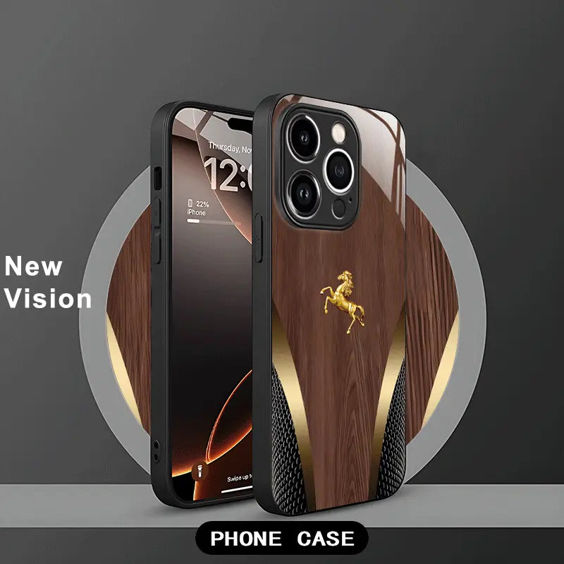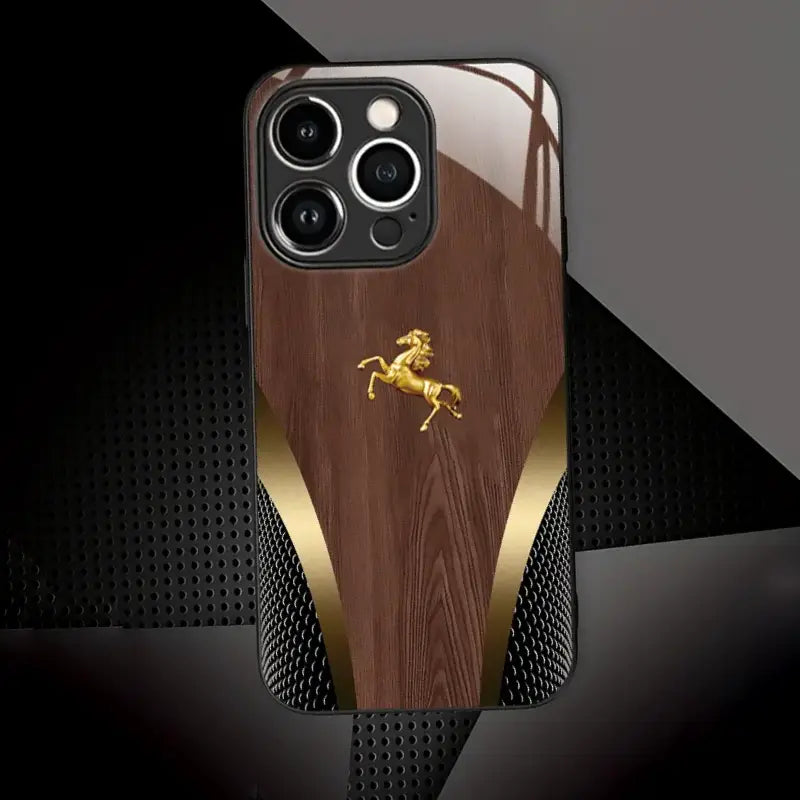 Command attention with Golden Knight, a sophisticated blend of classic wood texture and gleaming gold highlights. Designed for those who appreciate timeless elegance, this case captures the spirit of motion and power in one luxurious frame.
